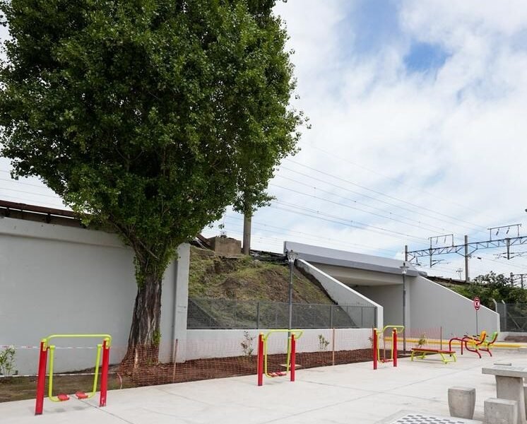 La construcción consistió en la colocación de un gran cajón de hormigón por debajo de las vías del ferrocarril Roca, con lo cual peatones, ciclistas y vehículos podrán circular sin necesidad de dar un gran desvío para llegar al otro lado.